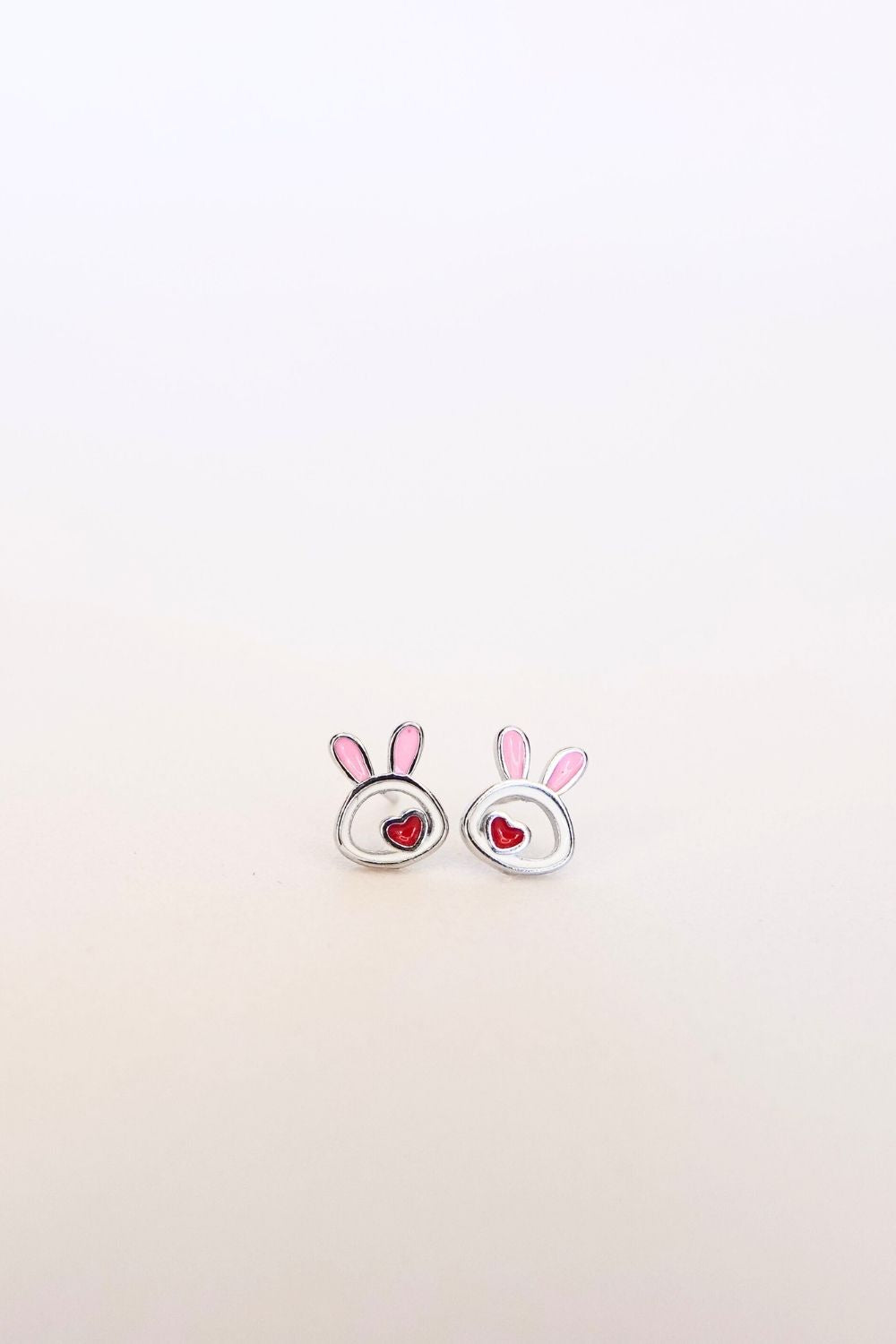 Pink Heart Bunny Stud White