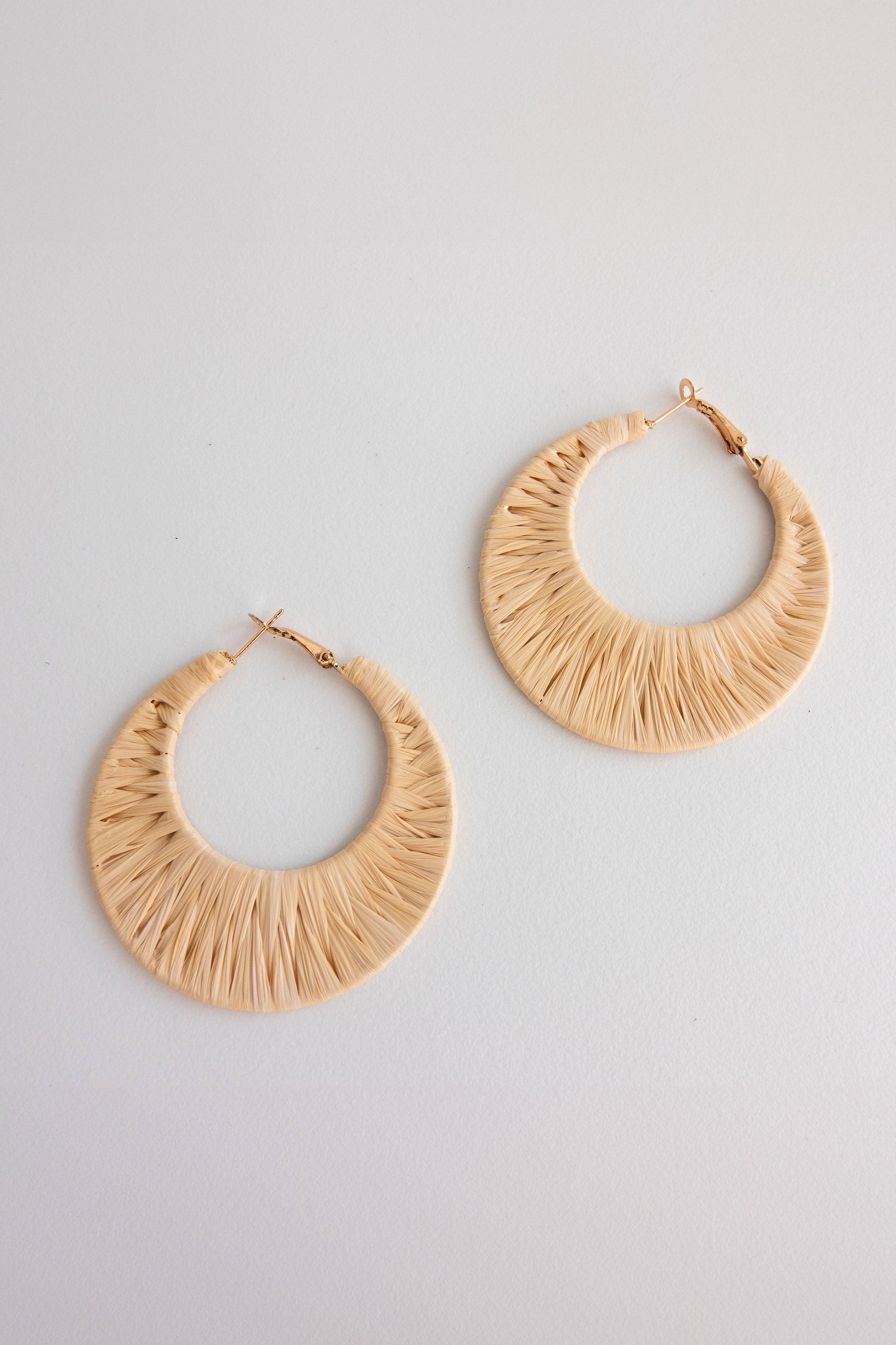 Don't get looped up with these Cream Raffia Hoops. Made with natural raffia fibers, these hoops add a touch of boho-chic to any outfit. Perfect for a playful and carefree look. Grab a pair (or two) for yourself today!