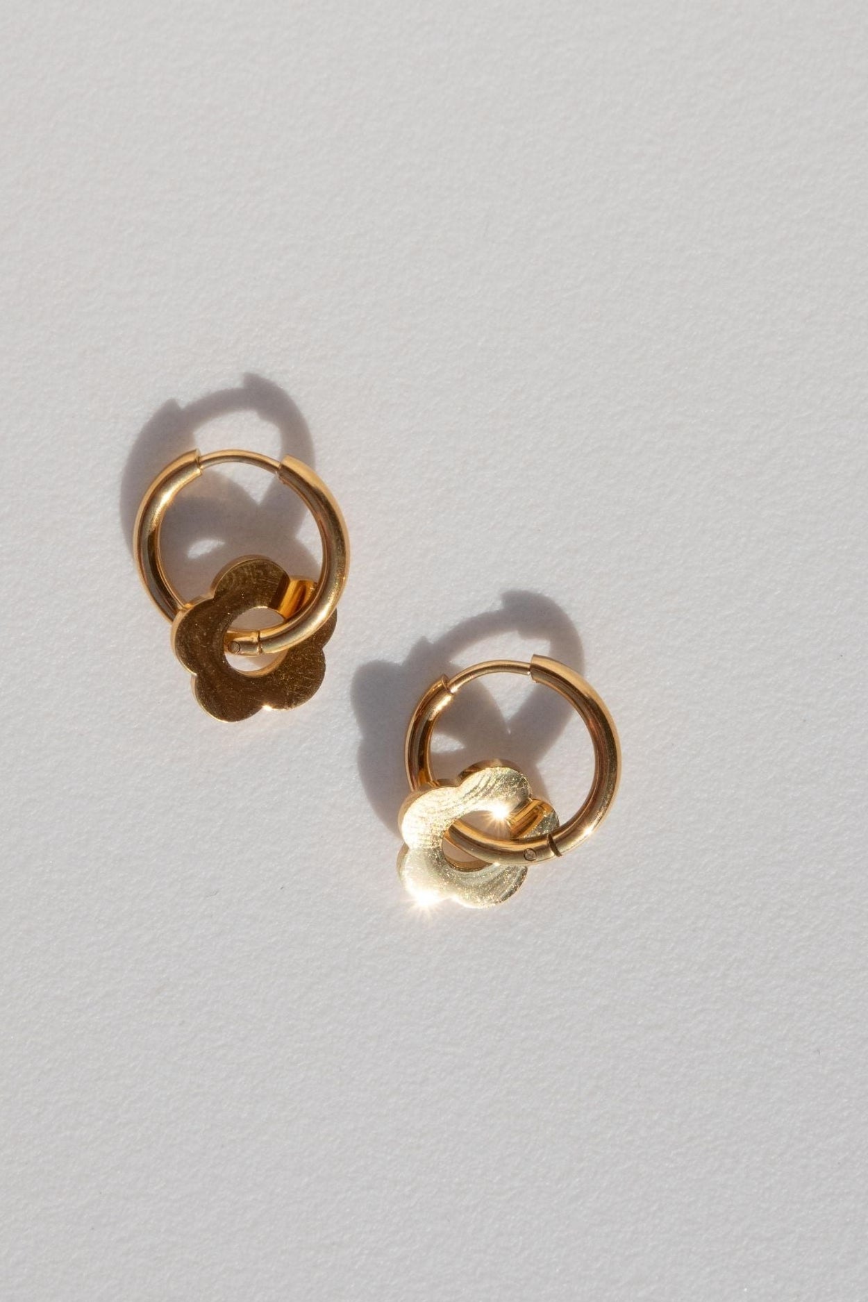 Sweet and punchy. These mini gold hypoallergenic hoops with a playful floral charm are perfect for everyday bloom energy.