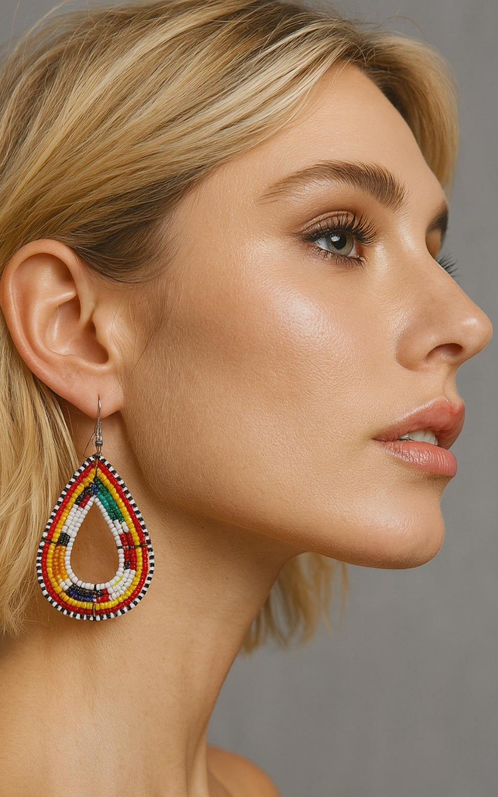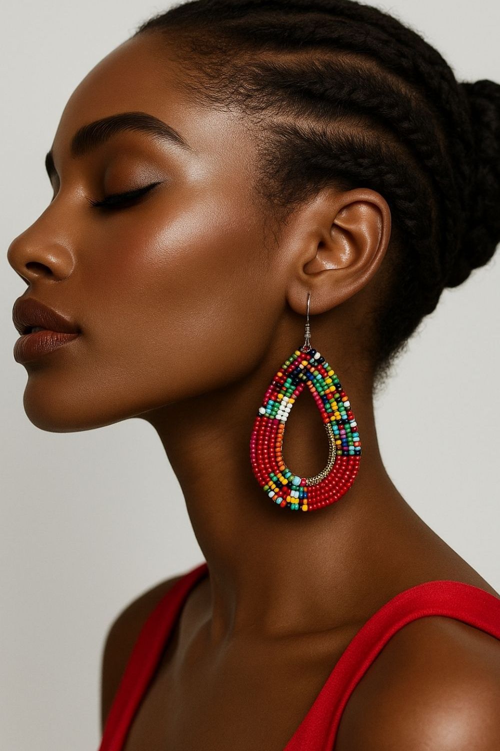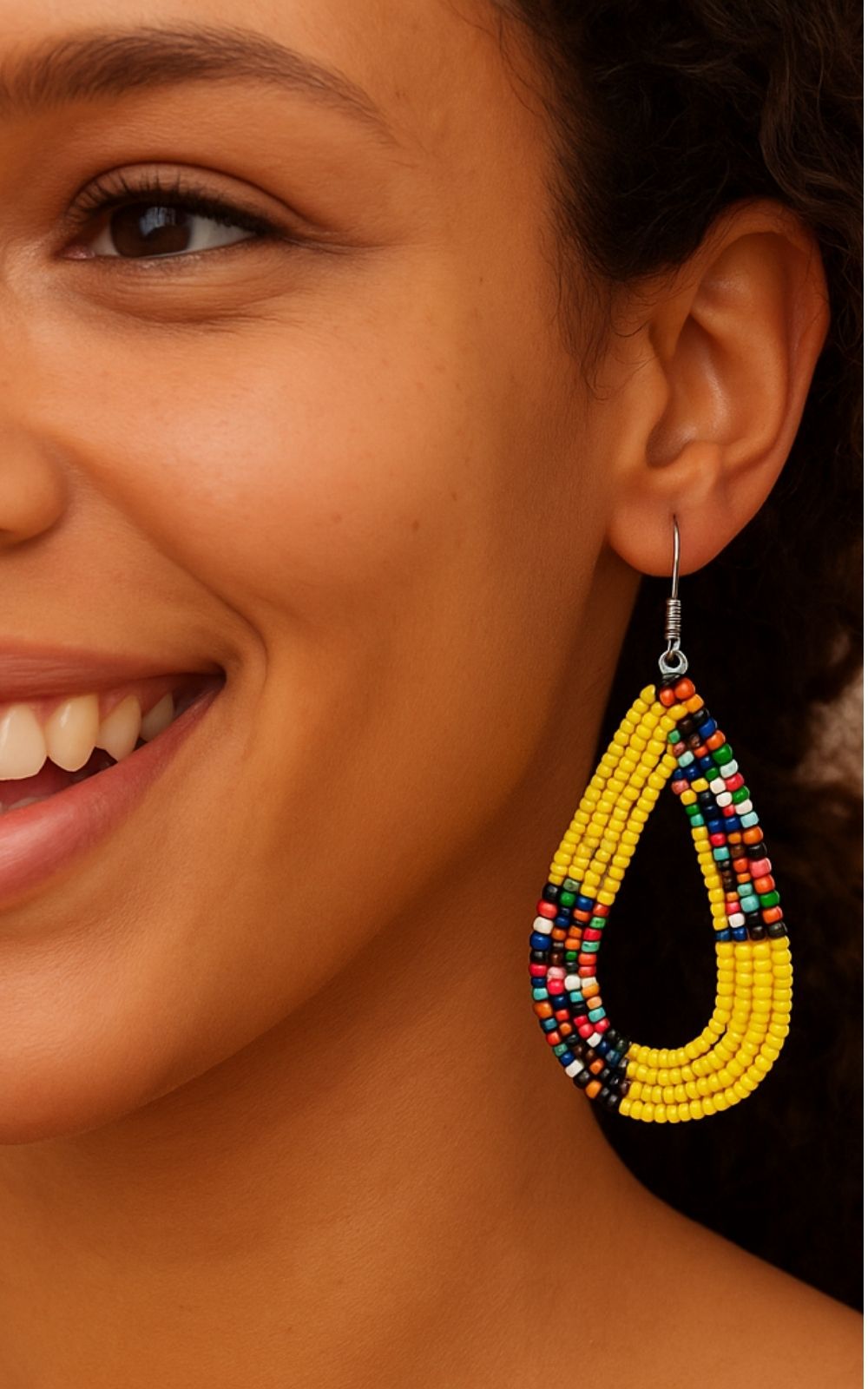 These handmade statement earrings are bold yet lightweight — perfect for everyday glam or special occasions. Inspired by traditional beadwork and crafted in Jozi with a modern twist, the teardrop shape flatters every face and adds a radiant touch of elegance.