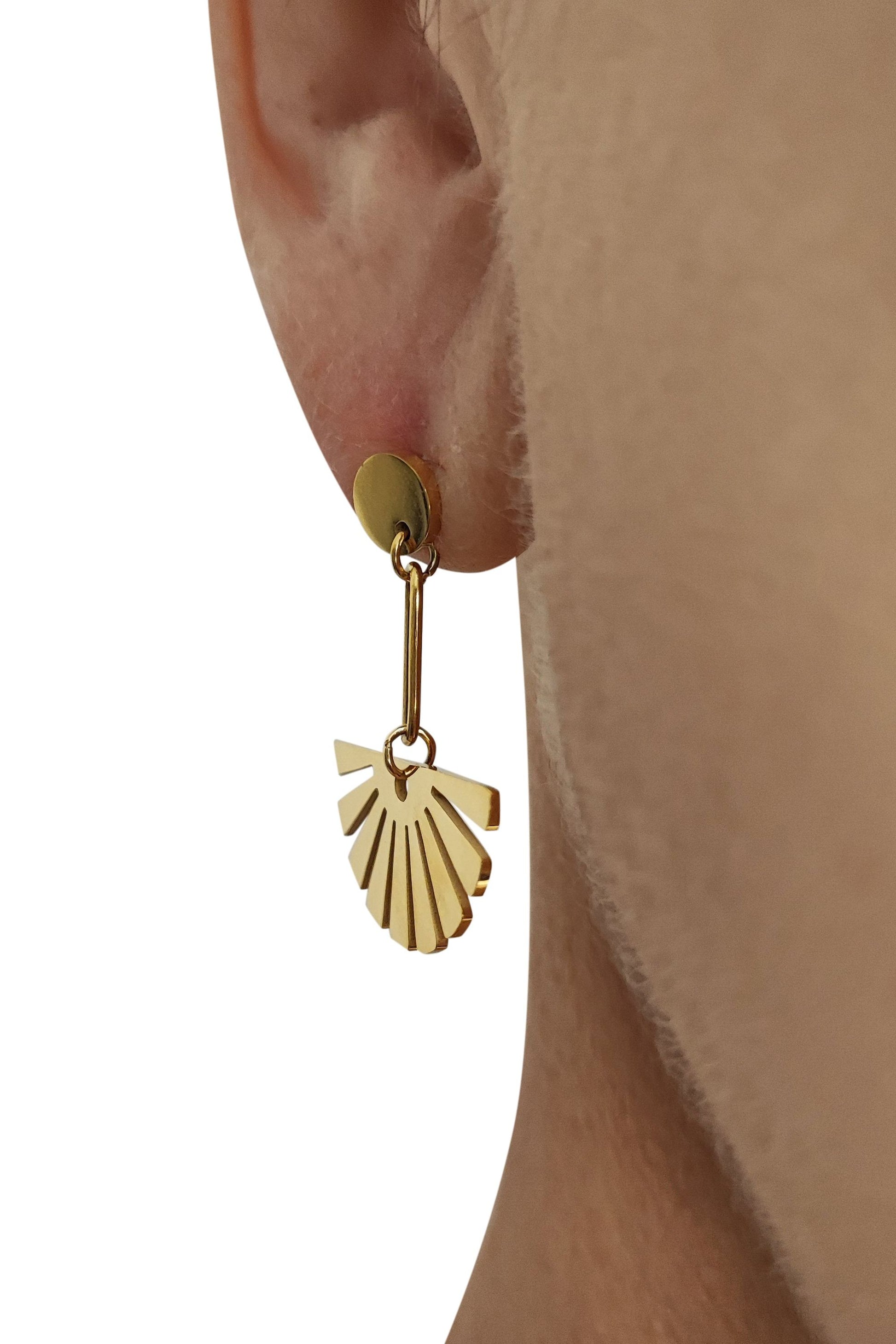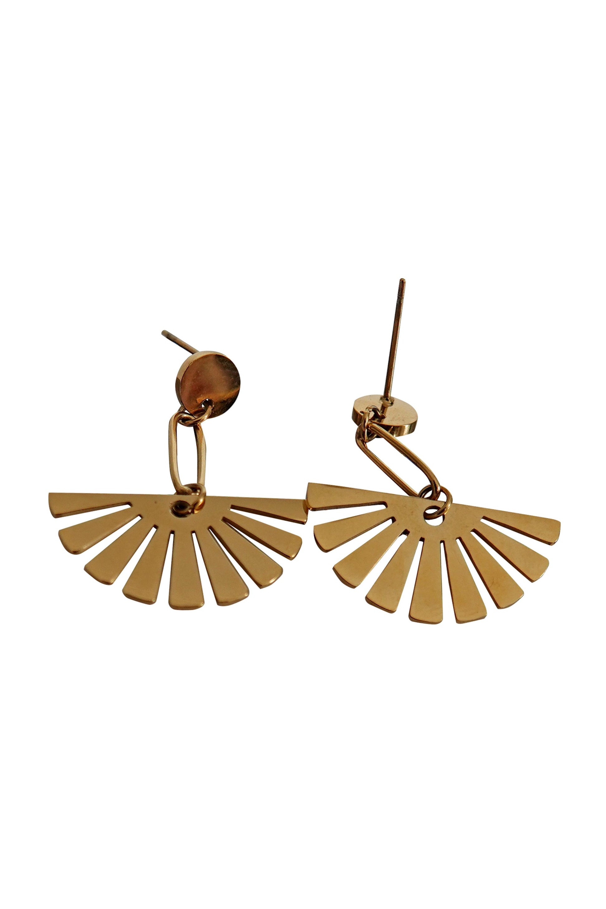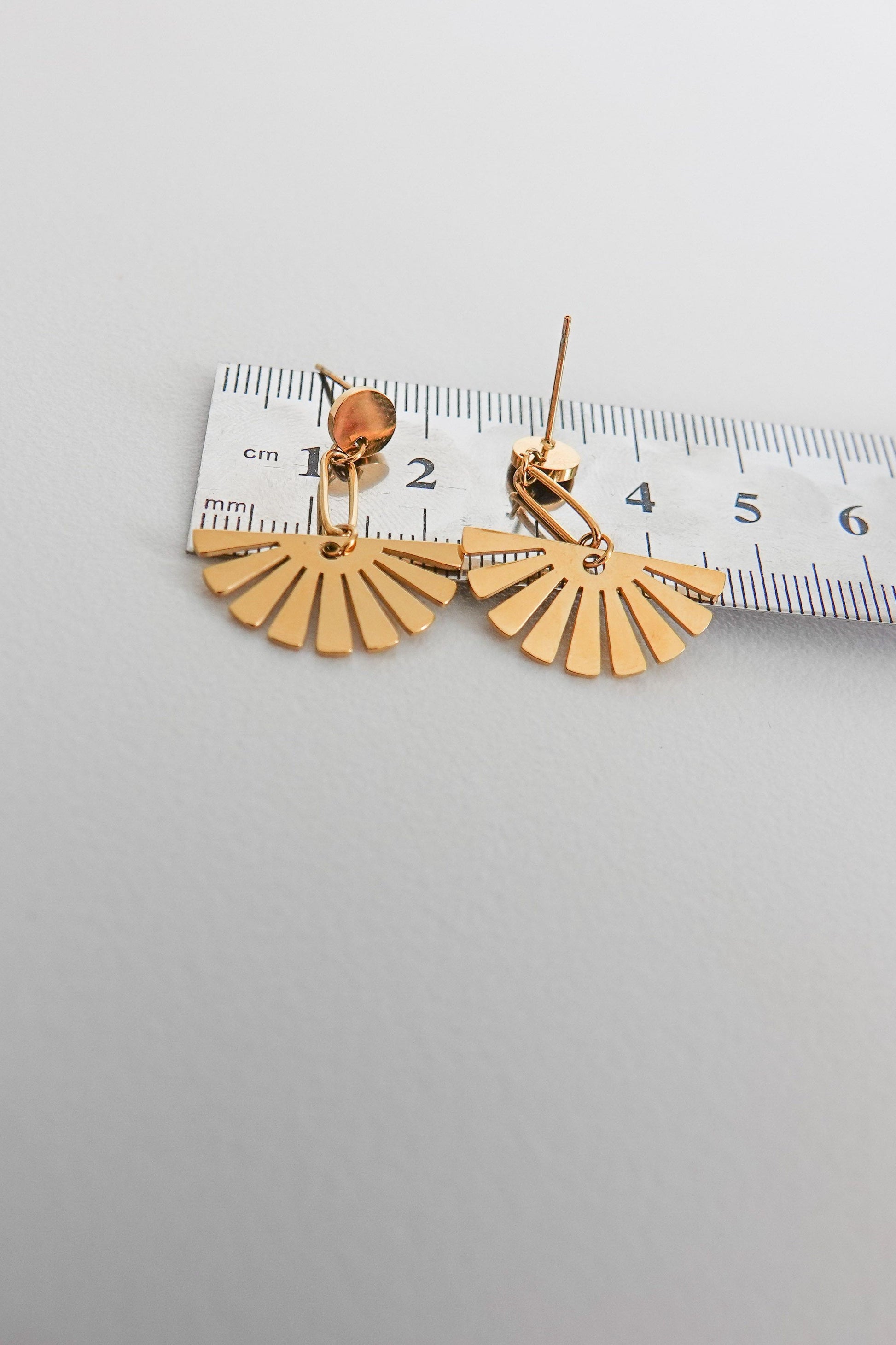 These delicate sunrise dangles add a soft, art deco edge to your look