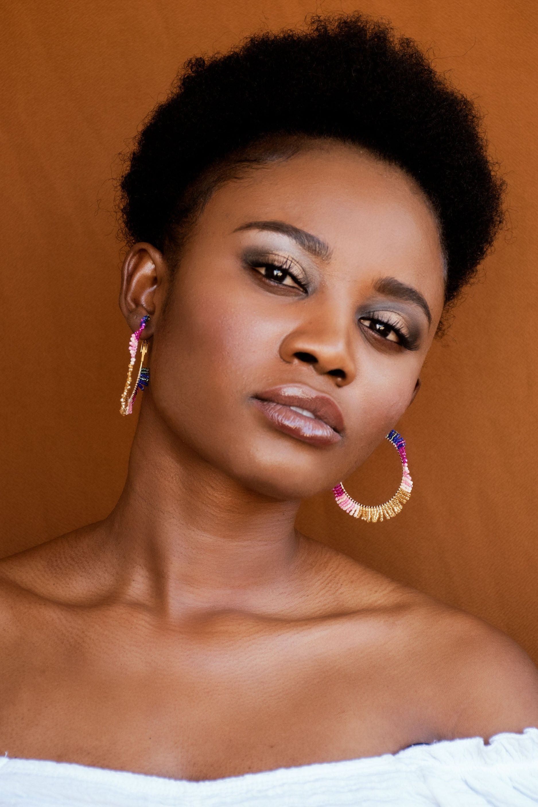 Add a touch of playful chic to your look with our Beaded Hoops. These quirky earrings feature intricate bead-work that will catch everyone's eye.