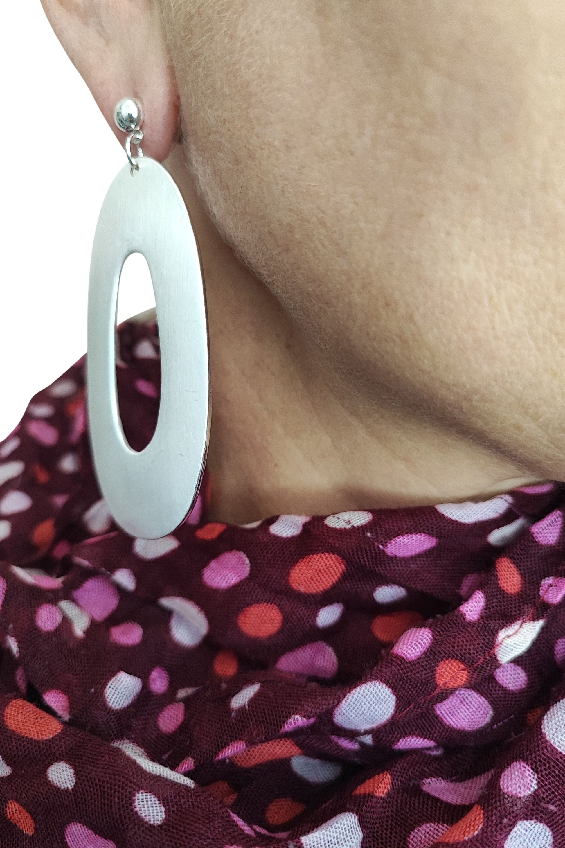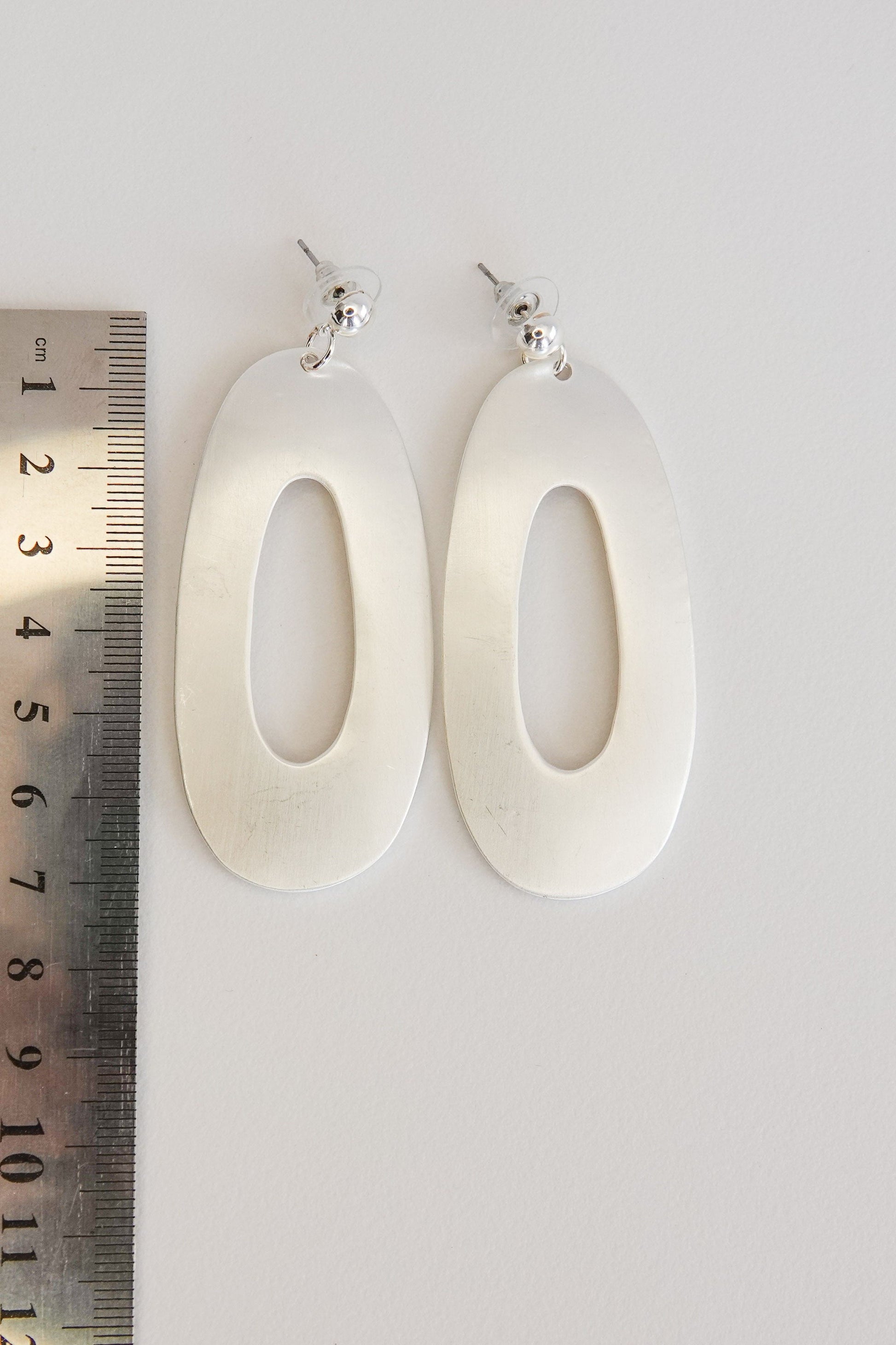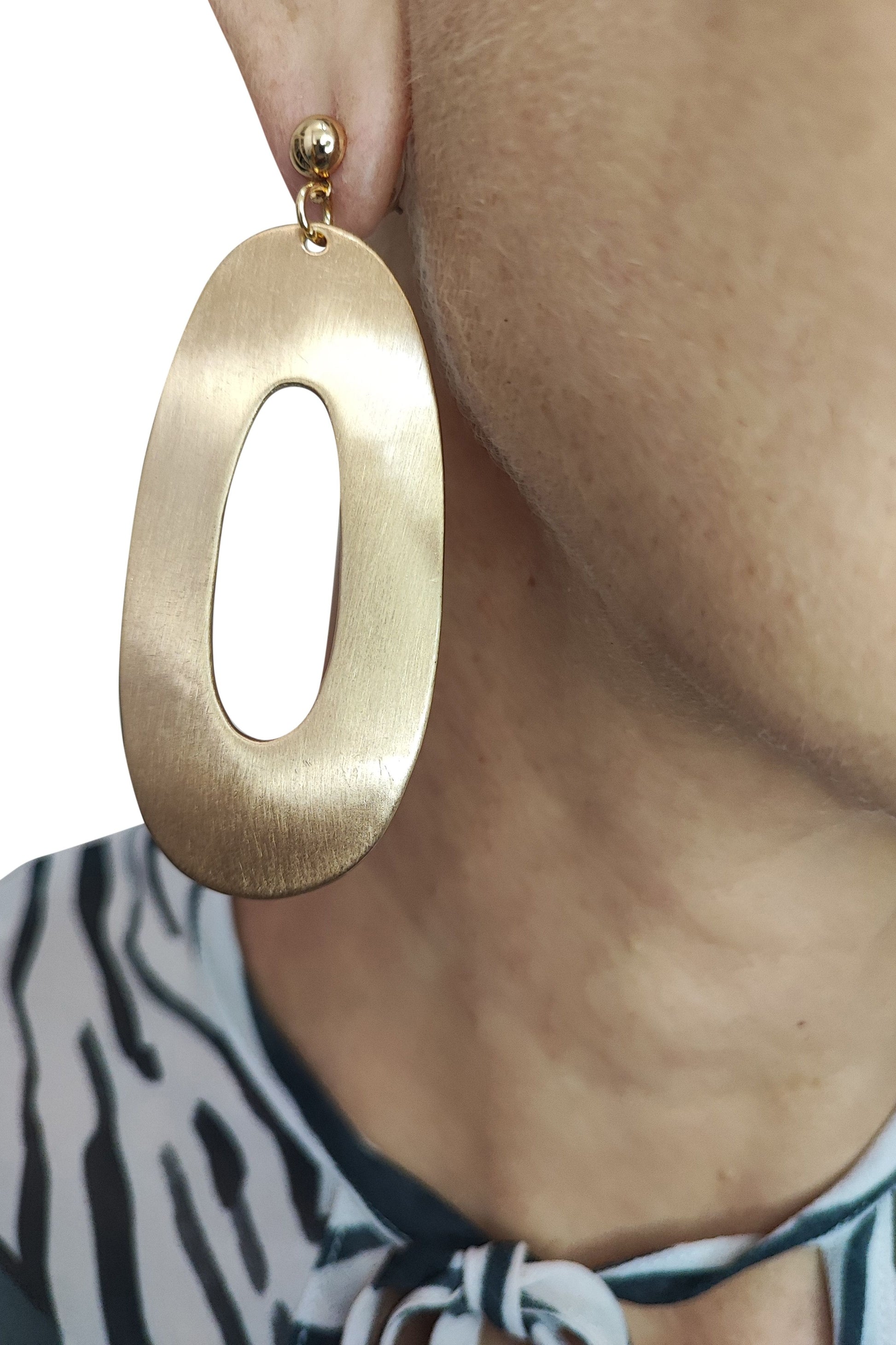Sleek and sculptural. These brushed gold and silver oval drops strike the perfect balance between retro and modern.